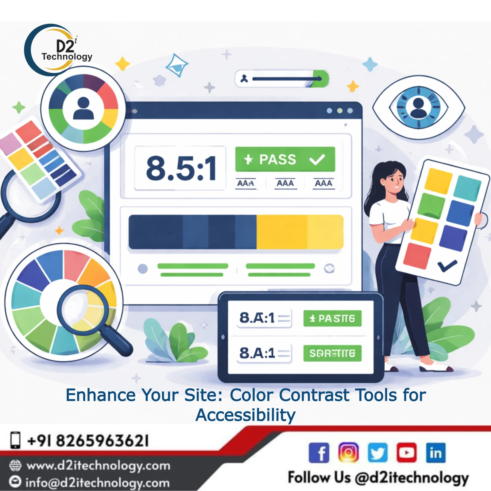 Ready to ensure your website meets WCAG color contrast standards and provides excellent experiences for all users? D2i Technology's accessibility experts deliver comprehensive testing, detailed remediation guidance, and ongoing support ensuring your digital platforms welcome everyone.